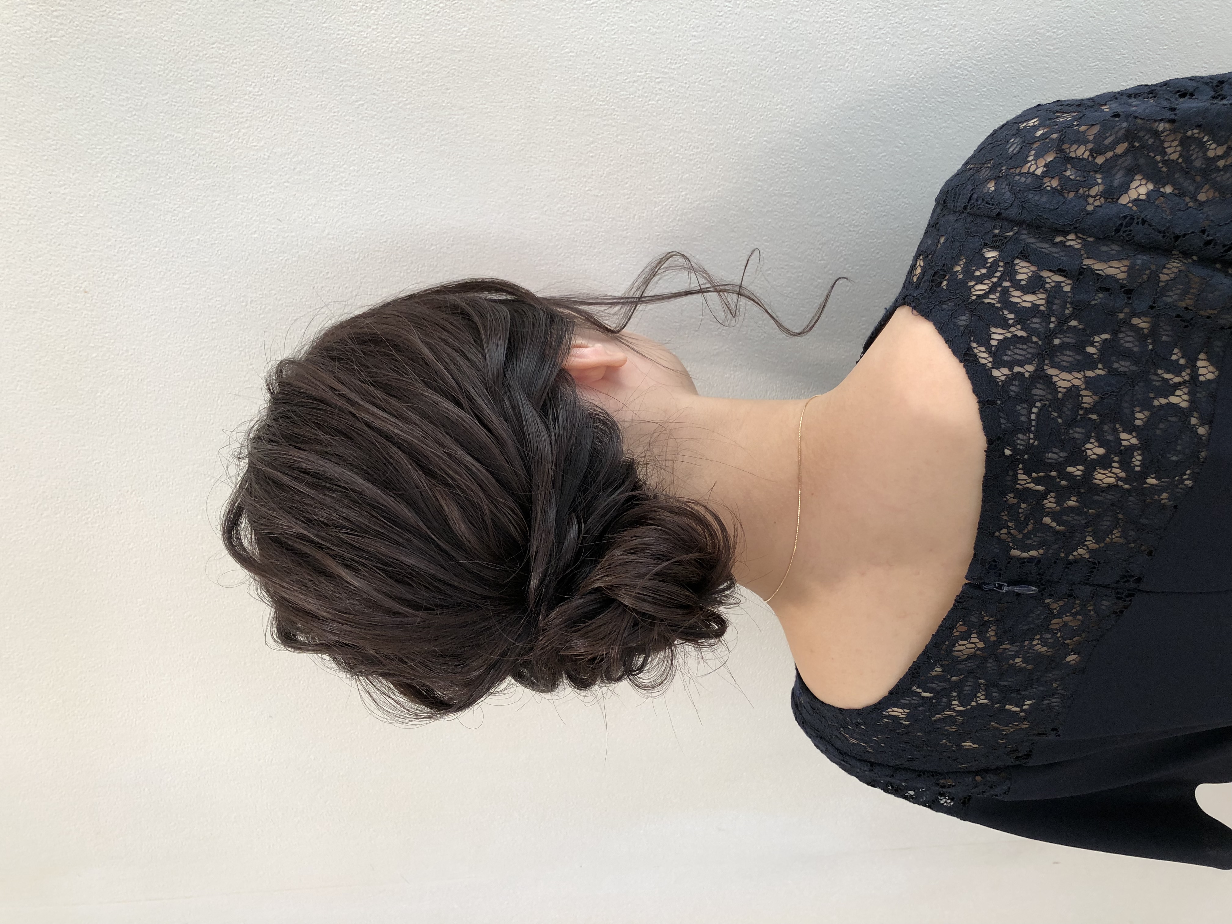 さっそく朝担当させて頂いたお客様が大人っぽいシニヨンにしたいとのご要望でしたのでご提案させてもらいました。