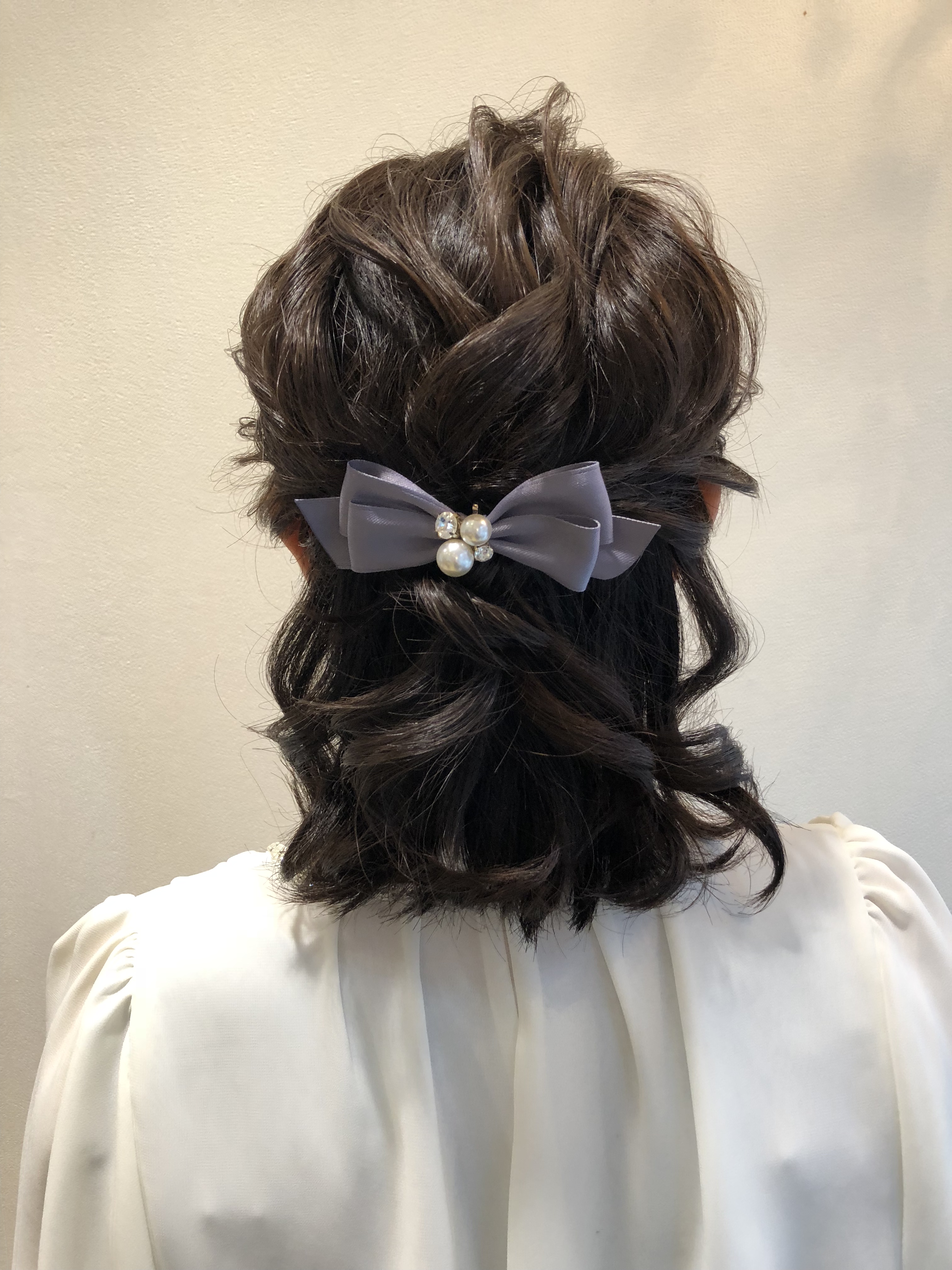 ご要望は特になかったのですがヘアアクセサリーを持ってらっしゃったのでそれに合うヘアアレンジをハーフアップをご提案させて頂きました。